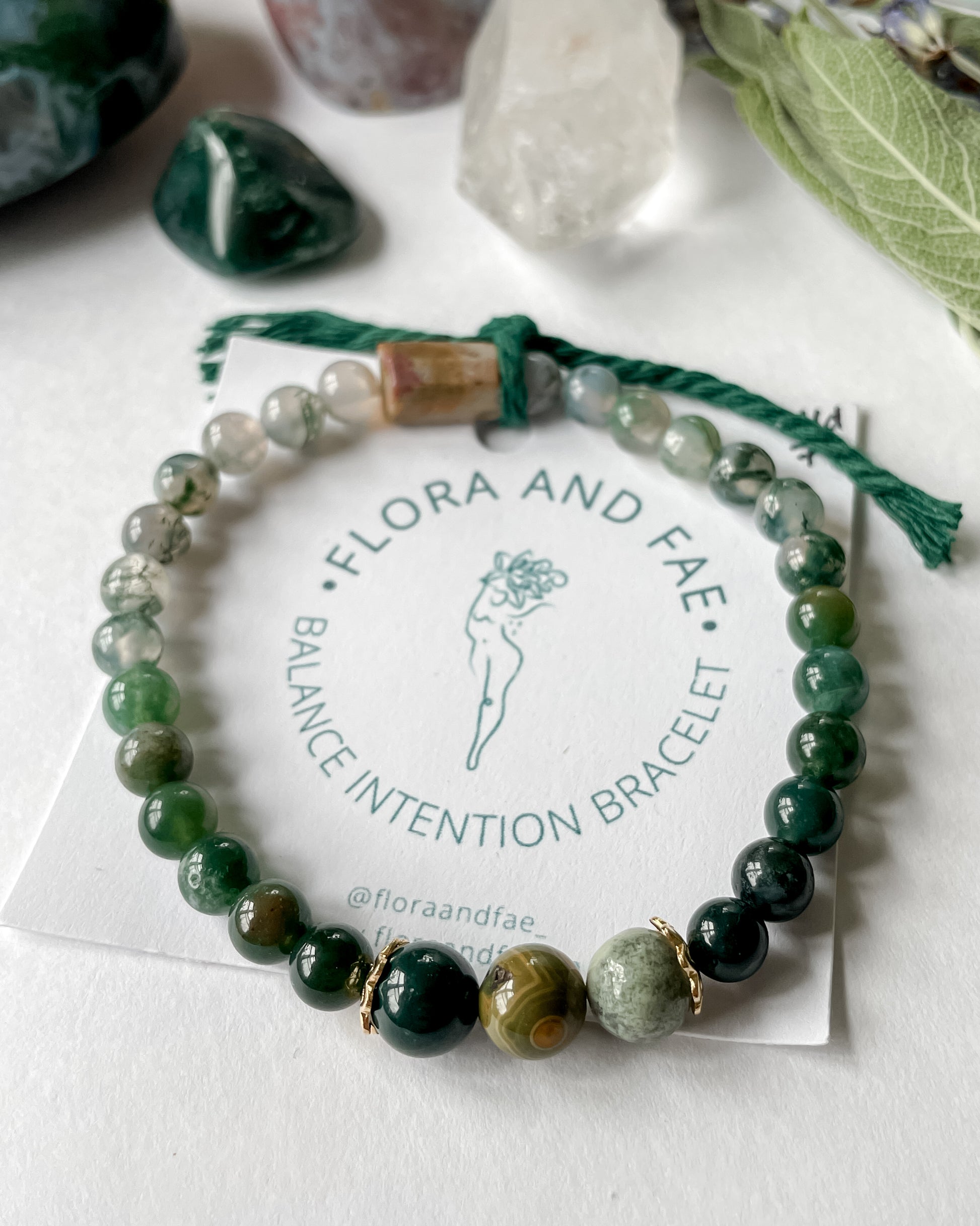 Balance Intention Bracelets promote positivity, stability, and connection to nature. 🌱