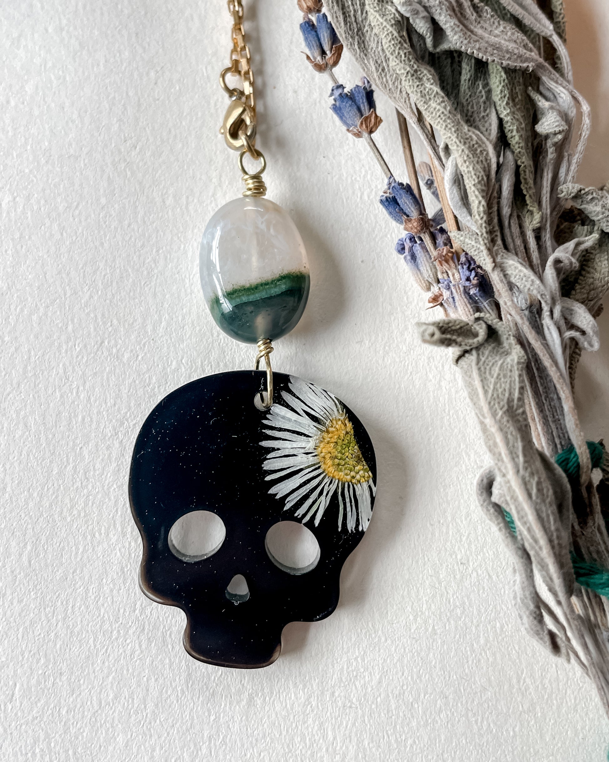 Hang these in your window, car, or plants for a touch of charm and intention. Skulls symbolize transformation, wisdom, and protection.
