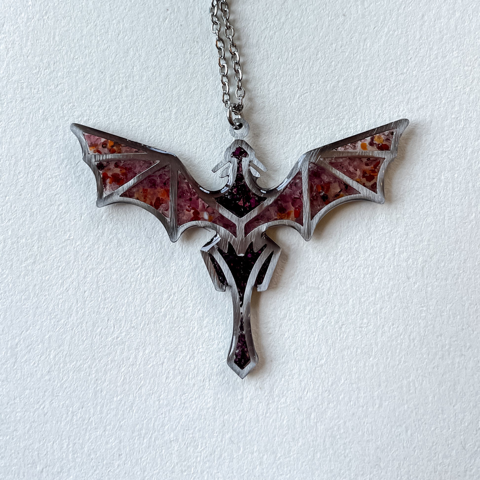 Dragons are stainless steel and come on a 20” chain.