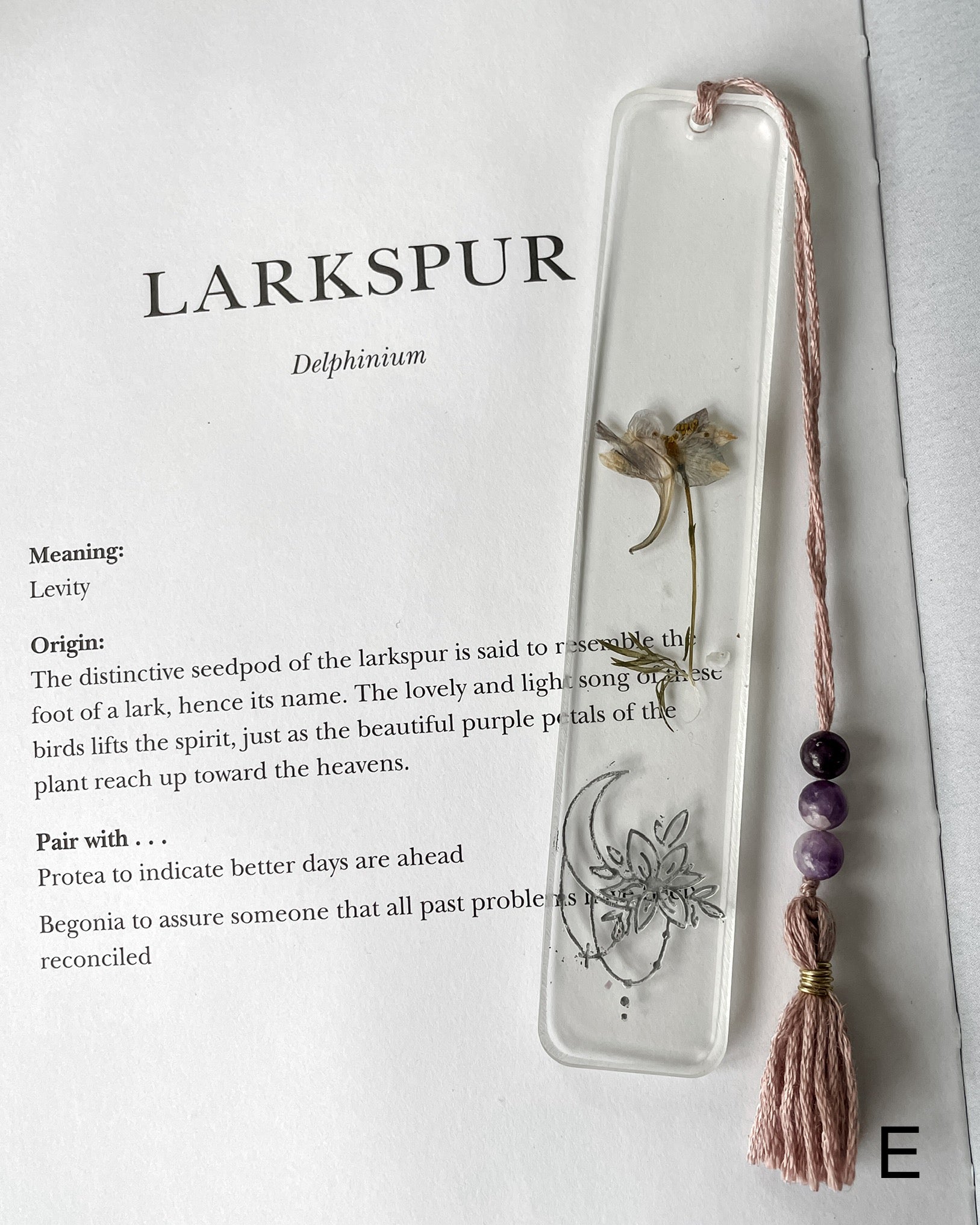 Larkspur brings a sense of lightness and emotional ease, while Lepidolite offers grounding, clarity, and gentle stress relief. Made to support quiet moments, deep reads, and anyone who seeks a little peace between the pages.