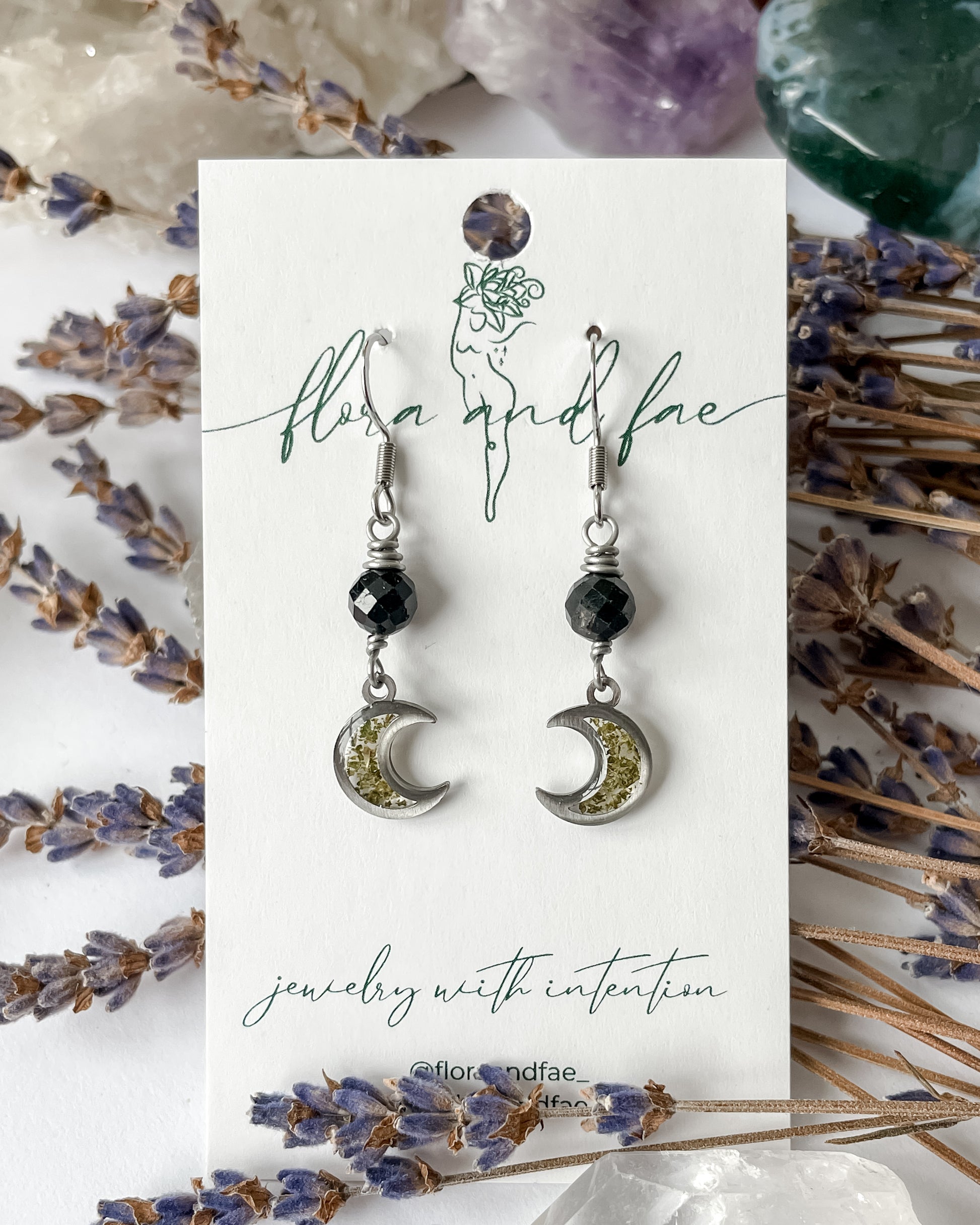 Made with stainless steel or gold coated stainless steel hooks, with stainless steel or brass wire and moon charms.