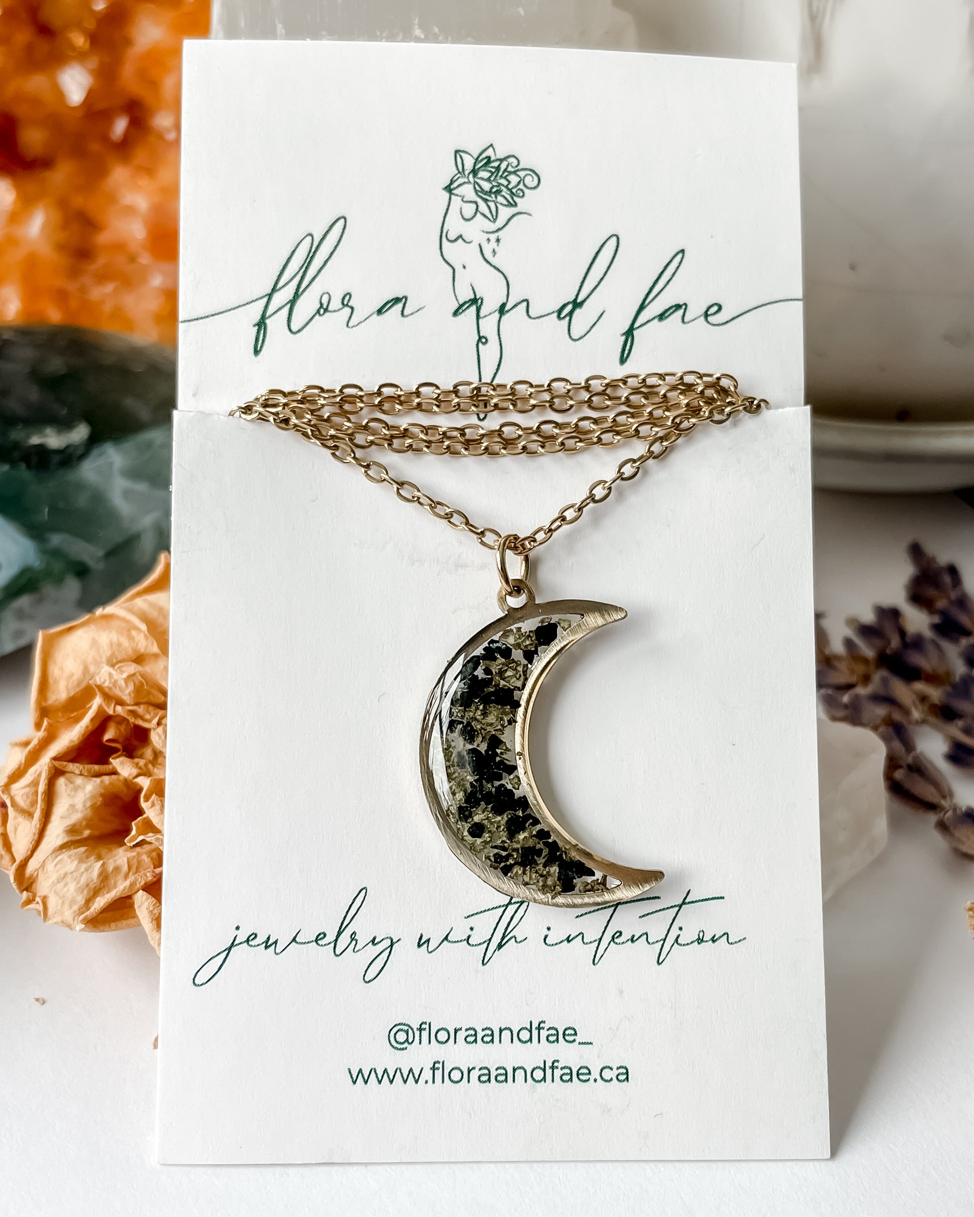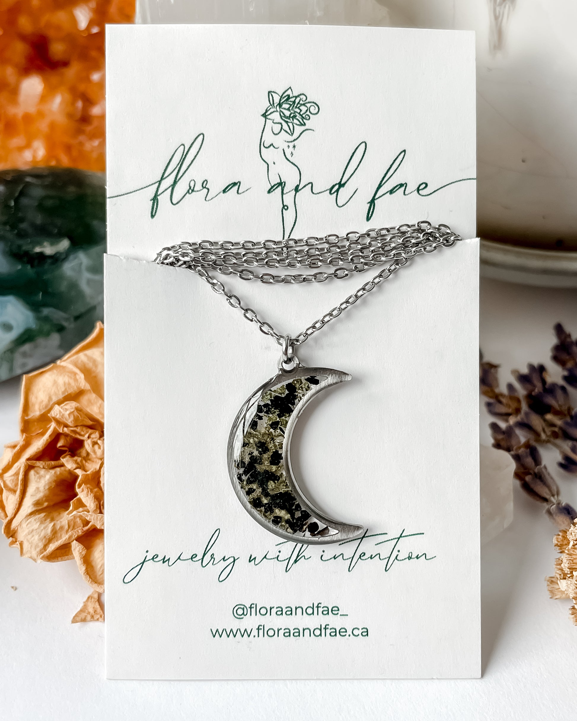 Handmade charms using real dried botanicals from my garden and natural crystals.