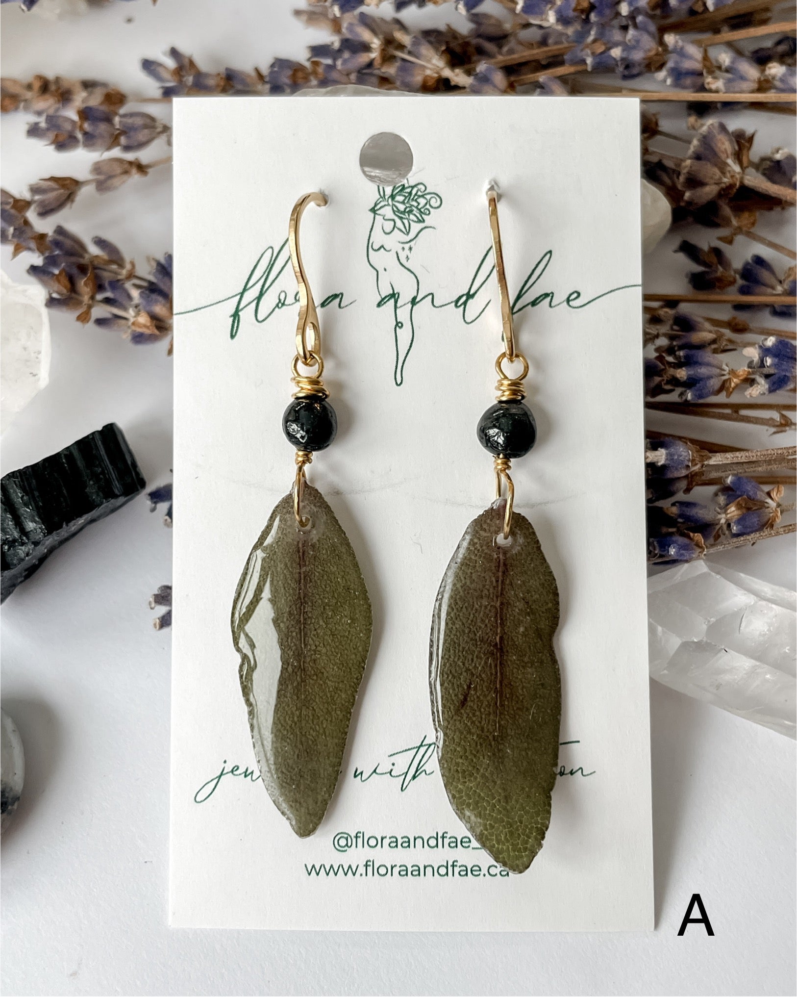 Earrings designed for protection and cleansing. Featuring Sage & Black Tourmaline. ✨